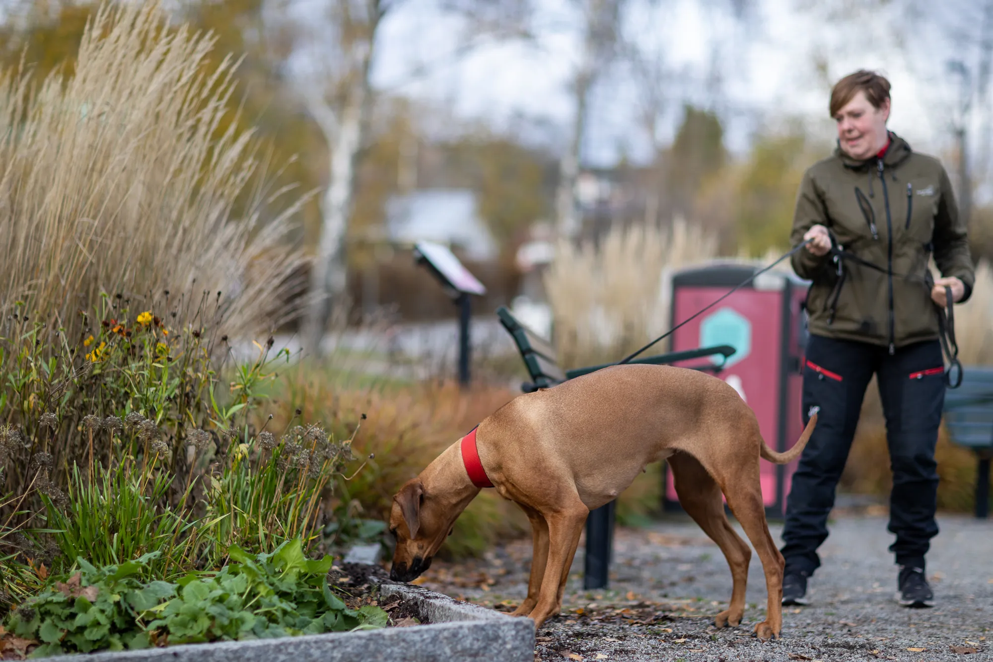 Madde tävlar aktivt med sina två Rhodesian Ridgebacks Bell och Tiger.