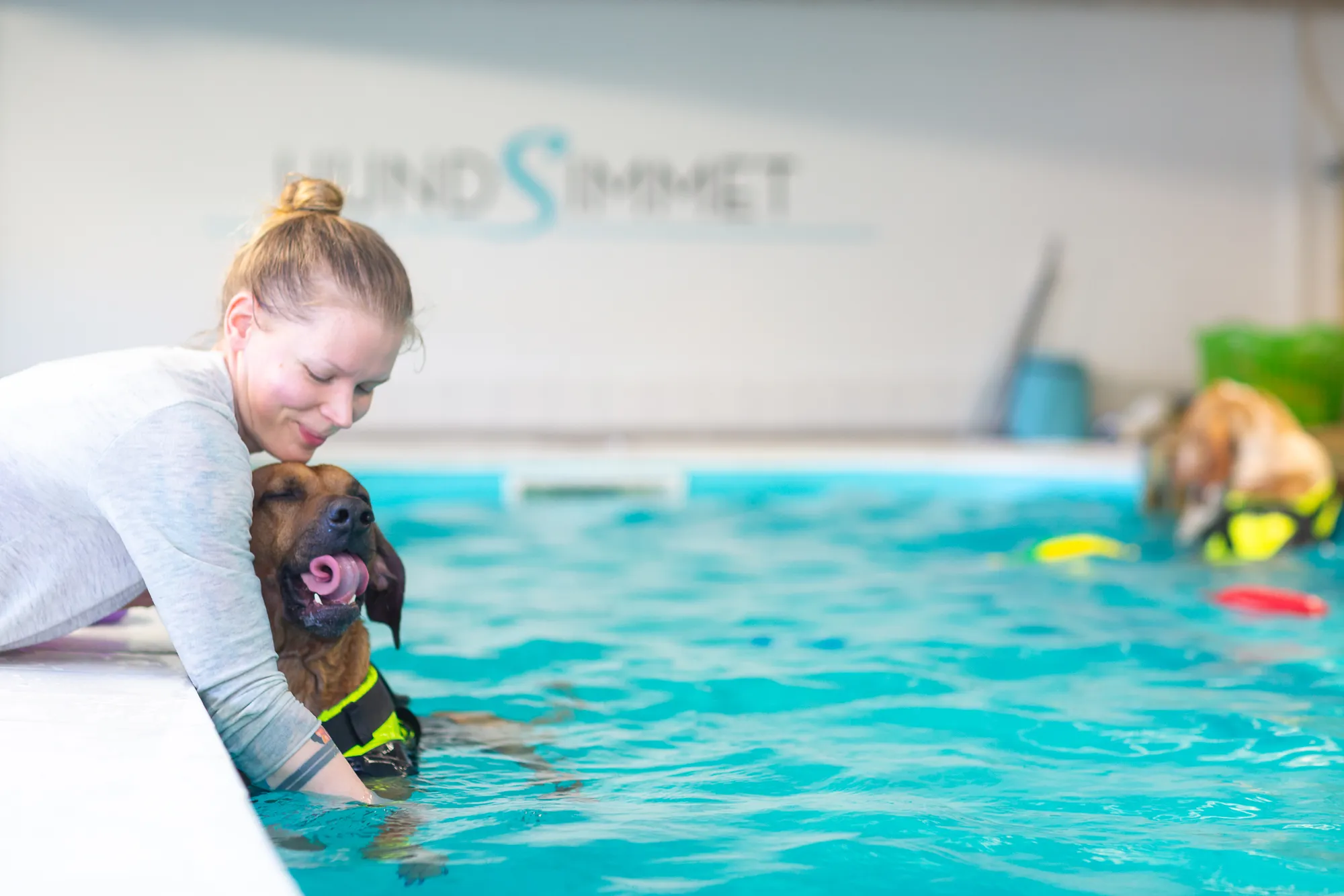 Oavsett om ni kommer med en rehabhund eller en frisk fystränare så ska träningen på simmet vara possitiv!
